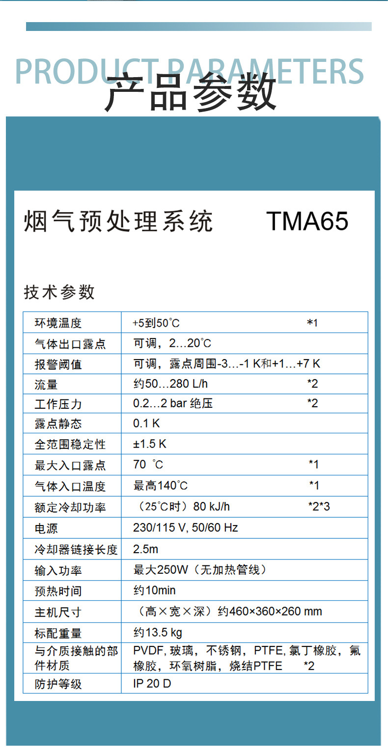 产品简介TMA65便携式气体预处理系统标配包含电子帕尔贴气体冷却器和冷凝泵(自动排除冷凝水)。另提供多种配件以及其他实用功能,以满足各种领域及各种气体分析仪器的