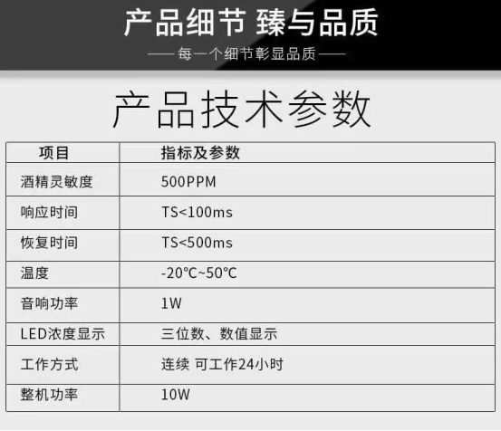 该仪器应用了两项国家专利技术,采用ISD语音集成电路、英国进口酒敏检测元件,有灵敏